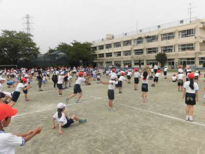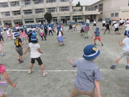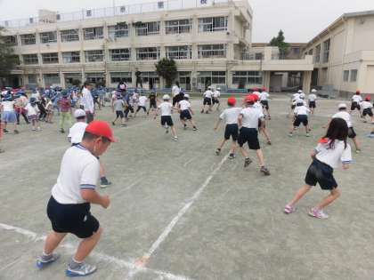 今日のハッスルタイムは、運動会に向けての整列と6月のスポーツテストで行う反復横跳び、立幅跳びに挑戦。1年生も周りを見ながらがんばって練習しました。