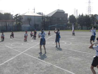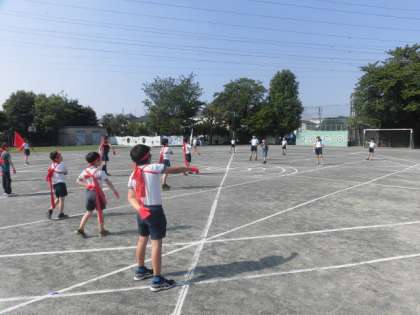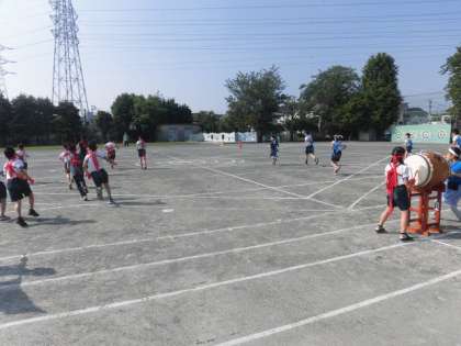 体育館で練習を続けてきた応援団。今日から広い校庭で練習を始まました。体育館より大きな声で大きな動作で応援をしましょう。