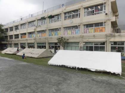 本日午前中、強い雨が降ったため、テント設営やライン引きなど準備が十分にできていません。そのため明日の運動会は、30分遅らせて午前9時30分、入場開始とします。子どもの登校も8時40分から50分と普段よりおそくなります。また、早朝より準備をしますのでで、毎年行ってきた午前7時の開門はいたしません。保護者の方は午前9時より保護者席にお入りいただきますのでご理解・ご協力をお願いします。詳しくは本日お配りした「運動会の実施の変更について」をご覧ください。(ホームページの配布文書にも掲載してあります)