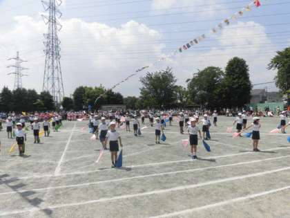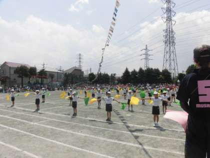 3年生の演技「FLASH Flag」両手に持ったフラッグを心を一つに動かしながら、リズミカルに踊りました。