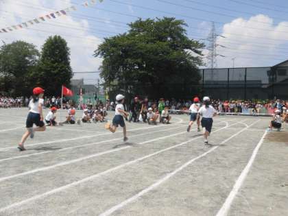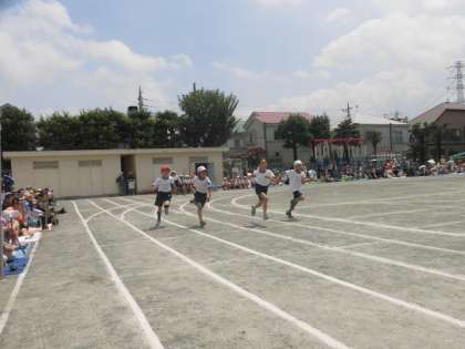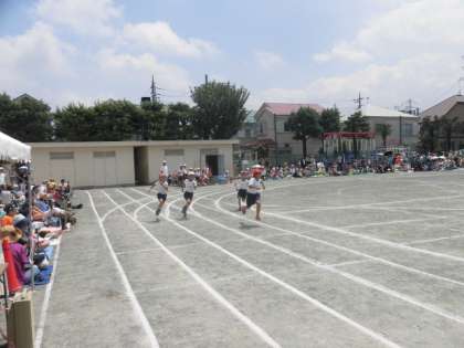 4年生の80m走。3年生の時よりカーブの走り方が上手になっています。