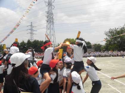 5・6年生の騎馬戦。白熱した騎馬戦。今年は引き分けでした。みんな頑張りました。