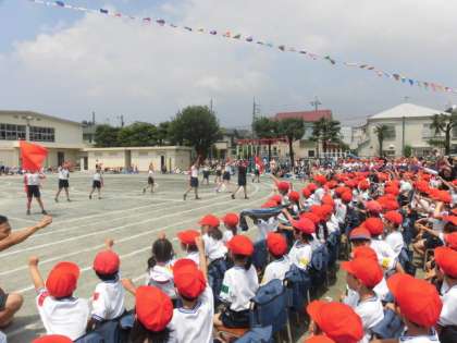午後の最初は、応援合戦です。応援団を中心にみんな大きな声で盛り上がりました。午後も頑張れそうです。