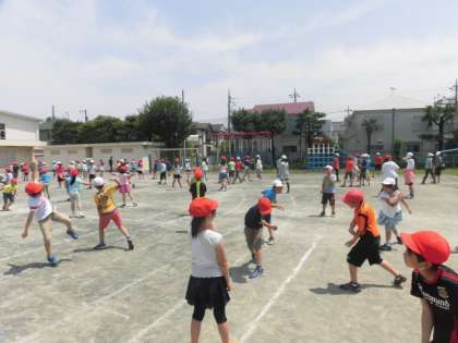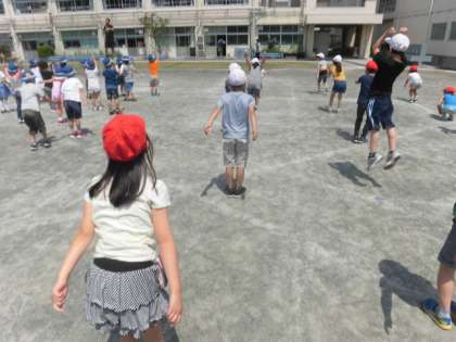 運動会が終わった後のハッスルタイム。6月6日に行うスポーツテストに向けて、立ち幅跳び、反復横跳び、ソフトボール投げの練習です。ソフトボールは投げ方だけで実際に投げるのは本番ですが、一人でも練習できるので家でもフォーム見てあげてください。