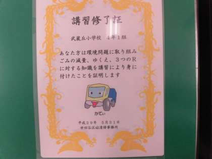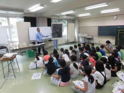 集会室では、集められたごみの処理の仕方、3R(リドュース、リユース、リサイクル)について学びました。これから色々調べていきますので、ご家庭でも一緒にごみ減量について考えてみてください。