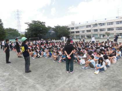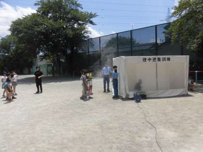 6月の避難訓練は火災を想定して行いました。5月の引き渡し訓練は雨天のため校庭への避難をしなかったので久しぶりの校庭への避難でしたが、1年生も「おかしも」の約束をしっかり守って避難できました。校庭へ避難の後は、煙の中を逃げる「煙中訓練」を全校で行いました。もしもの時に自分の身を守るための大切な訓練です。