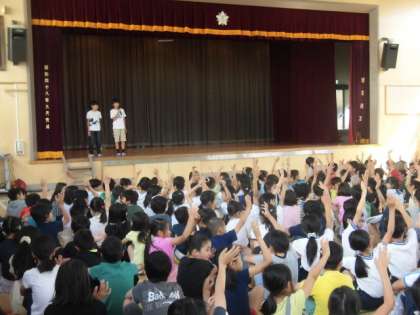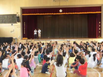 集会委員会が今年度最初のゲーム集会を行いました。体育館で「音楽当てクイズ」をしました。初めてゲーム集会に参加した1年生も、曲名がわかると大きく手を挙げていました。これからも楽しい企画をお願いします。