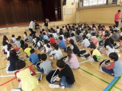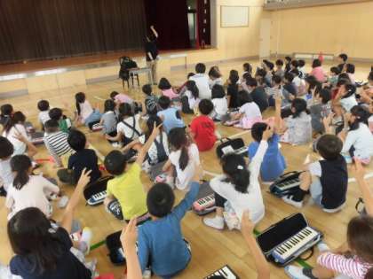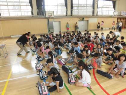 1年生全員が体育館に集まり、鍵盤ハーモニカの使い方を講師の先生から教えていただきました。自分でケースから出して、準備をして、待ち方や吹き方など学びました。これからは音楽でたくさん吹いていきましょう。