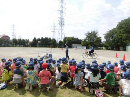 成城警察のお巡りさん、駐在所の高橋さんにきていただき3年生で自転車交通安全教室を行いました。自転車に乗るときのルールやマナーを教えていただき、実際に自転車に乗って、正しい乗り方を学習しました。これからは一人で自転車に乗ることができますが、一人一人がしっかりとルールを守って安全第一で乗りましょう。