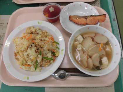 今日の給食は、ちらしずし さけの照り焼き 七夕じる フルーツゼリー です。