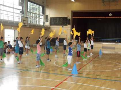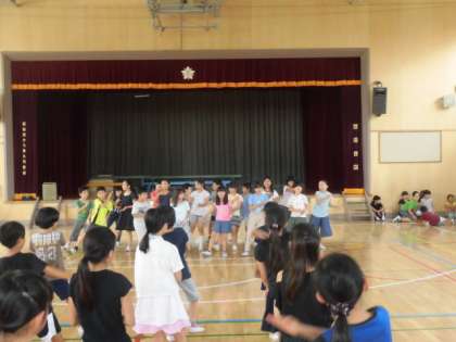 1学期もあと二日。夏休みなった最初の土曜日には、烏山公園で千駄山町会のふれあい祭りが開かれます。1年生から4年生は、参加できる子が開会式で運動会の演技を披露します。校庭より狭いところで踊るので、1組、2組が順番で踊ったりしないといけません。でも、子どもたちは運動会でしっかり練習してのですぐに上手に踊っていました。土曜日には、子どもたちの頑張りに大きな声援をお願いします。