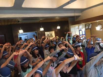 3日めの朝は雨が降っています。みんな起床時間までぐっすり寝ていました。ロビーで朝会をして最終日の活動を始めます。まずは、荷物整理です。