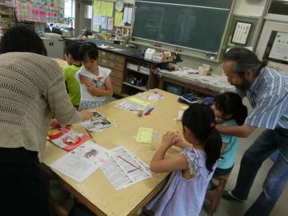 Tボールでは、前半1年生〜3年生、後半4年生〜6年生が参加して、もたくさん汗をかき、最後は2チームに分かれての対戦も白熱しました。「起き上がりこぼし」では、かわいいフクロウの置物が上手に出来上がりました。