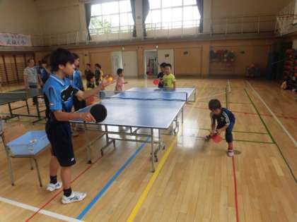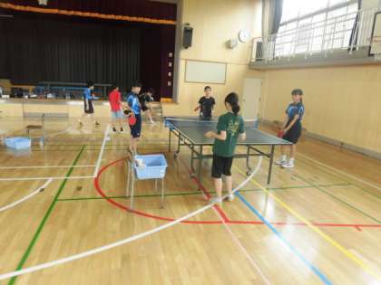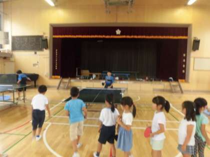 今日の地域教室、体育館では「卓球」が行われました。1回目が1・2年生、2回目が3・4年生、3回目が5・6年生です。初めてラケットを持つ子もいますが、烏山中学校の9名の卓球部の皆さんがやさしく、丁寧に教えてくれました。ゲームもしたりして楽しみました。烏山中学校のみなさん、ありがとうございました。