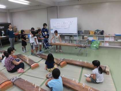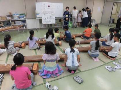 集会室では、舩川長子先生による「お琴」が開かれました。1回目は、1・2年生、2回目は3〜6年生です。初めて琴に触れるお子さんも最後には曲を弾くこともできるようになりました。日本の伝統楽器に触れる貴重な機会となりました。