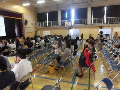 1学期から学年委員会の皆様に準備いただいた単P研修会。とても暑い体育館に150名を超える保護者、教員が集まって講師の先生のお話を聞きました。講師には、今年の冬に放送されたテレビ番組「下剋上受験」の作者の桜井信一先生をお迎えしました。ご自信と娘さんの中学受験の体験をもとに、子供の自尊感情を高めることの大切さ、親と子の関係など色々考えさせられるお話を伺いました。とても実り多い研修会となりました。学年委員会の皆様、ありがとうございました。