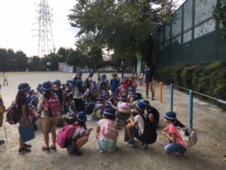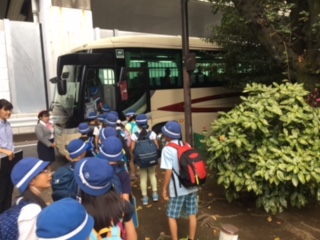 良い天気の中、4年生が社会科見学に出発です。2回めの社会科見学。3年生の時より、遠くに出かけます。見学場所は、有明清掃工場、水の科学館、中央防波堤埋立処分場です。