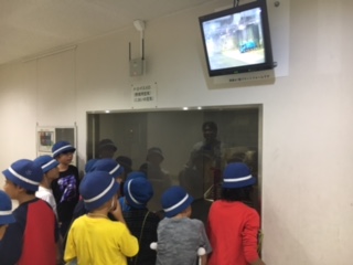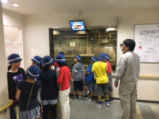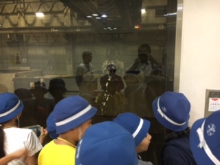 工場の中をグループごとに説明を聞きながら見学しています。初めて見るものがたくさんあります。