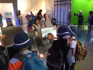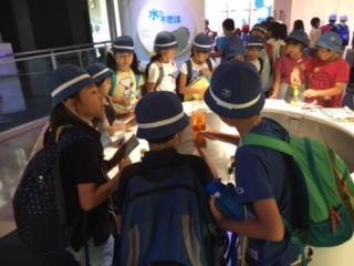 有明清掃工場の見学を終えて、水の科学館に到着。グループごとに館内を見ています。