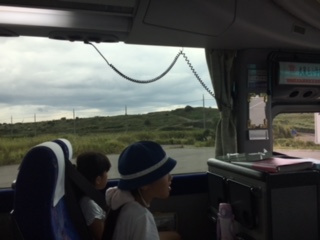 最後の見学場所、中央防波堤埋立処分場に到着。最初にバスで埋立処分場を見学します。