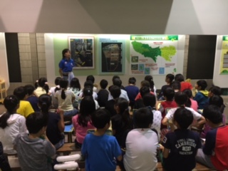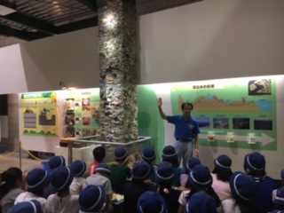 中央防波堤埋立処分場の見学のまとめの話を聞いています。実際に見た後なので説明がよくわかります。