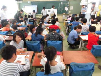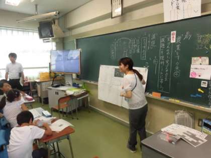 9月2回目の校内研究授業を行いました。今回は3年2組で『「農業」をする魚』という説明文の授業です。本文の叙述から筆者が行った二つの実験の課題を考えます。理科の授業で行う実験と関連付けた授業でした。子供たちは集中して授業に取り組みました。協議会でも様々なことが話され、講師の先生からも丁寧な指導をいただきました。次時からの指導に生かしていきます。