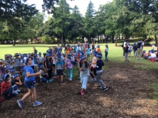 遊具遊びの後は、12年生合同の班で芝生の広場で遊びます。