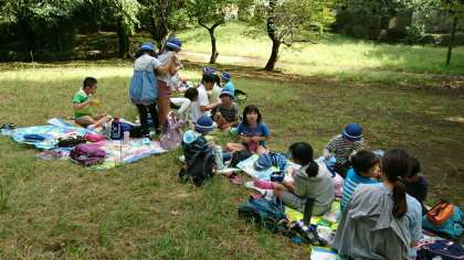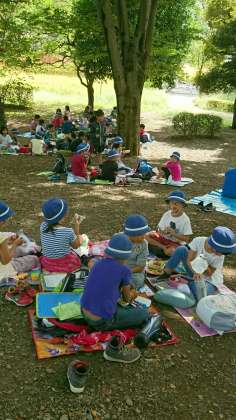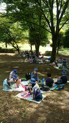 美味しいお弁当を食べてます。みんな笑顔でいっぱいです。お弁当の用意ありがとうございました。