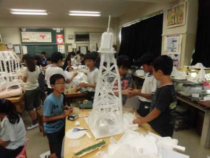 2学期の大きな行事「展覧会」に向けて、それぞれの学年が作品作りを進めています。6年生も作品も楽しそうな作品がたくさんでき上がってきています。