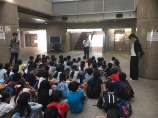 4年生がバスで教育センターに出掛けて勉強です。プラネタリウムと郷土学習室で学習します。教えていただく先生方に挨拶して学習を始めます。