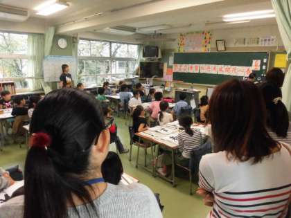 2年生が、昨日、今日と鈴木ゆう子先生から「習字」を教えていただきました。初めて筆で字を書く子も多く、鈴木先生のお話をしっかりと聞いて、みんな楽しく取り組んでいました。一人一人が書いた字をつなげると、武蔵丘小の校歌になりました。最後は、みんなで校歌を歌いながら習字に親しみました。3年生からの習字の授業が楽しみになりました。