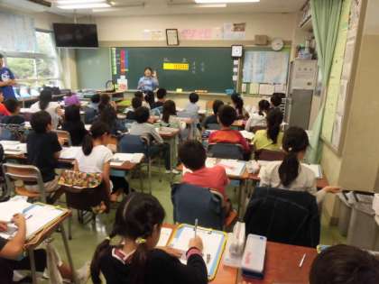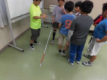 総合的な学習の時間で「バリアフリー」について学習する4年生。今日の5・6校時には、久我山青光学園から2人の先生に来ていただき、「点示」ついて教えていただきました。実物を見せたいただいたり、触らせていただきながら学習を進めました。今日の貴重な体験は、明日の総合の時間で振り返りをして、さらに調べ学習を進めていきます。