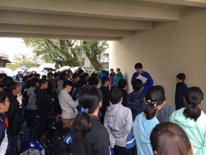 5年生が待ちに待った川場移動教室が始まります。雨の中の出発になりましたが、しっかり話を聞いて出発式をしました。雨の中、たくさんの保護者の方にお見送りしていただきありがとうございました。3日間安全に楽しく過ごしてきます。