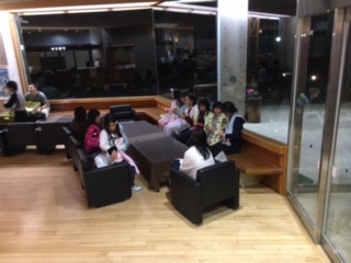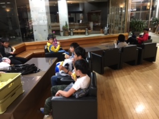 風呂上がりにバナナを食べています。もうすぐ1日めも終わります。今日は、ゆっくり休んで明日の鉱石山登山に備えましょう。