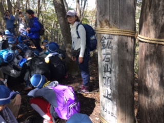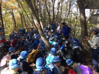 鉱石山の頂上に到着。みんな良く歩きました。