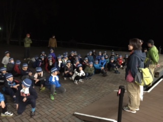 2日め最後のプログラムは、ナイトハイクです。ガイドさんの話を聞きながら、夜の川場を歩きます。東京では味わえない夜の自然にふれます。1組、2組分かれて歩きます。
