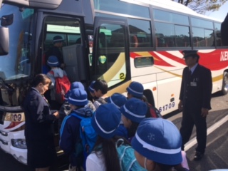 ごちそうさまをして田園プラザを出発します。楽しかった川場村での活動は終わり。気をつけて学校まで戻ります。素早く行動できたので予定より15分早い13時15分に田園プラザを出発です。