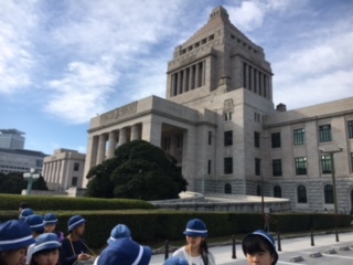 国会議事堂の中の見学を終えて集合写真を取りました。静かに見学できました。