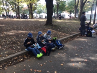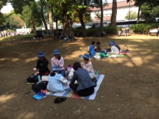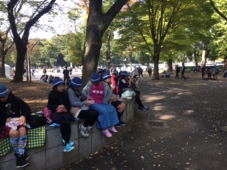 上野公園に到着。他県からの修学旅行も多く混んでいます。これからお弁当です。いただきます。