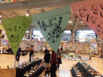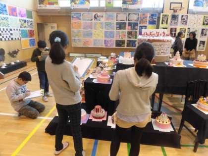 いよいよ展覧会が始まりました。体育館にそろった世界で一つだけの作品。学級ごとに1時間かけて観賞カードをしっかり描きながら、観賞しています。気に入った作品がたくさん見つかったようです。