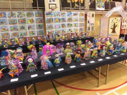 2年立体作品「ピコリン星人のカラフルパーティー」