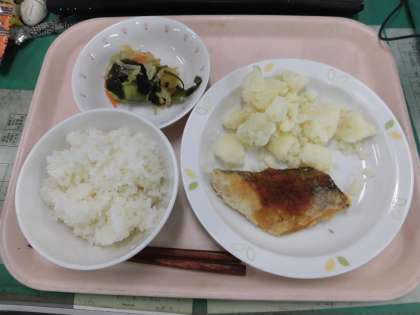 今日の給食は、*ごはん *魚のステーキソース *こふきいも *わかめサラダ です。