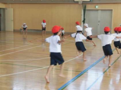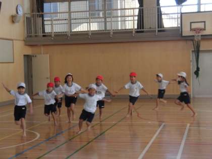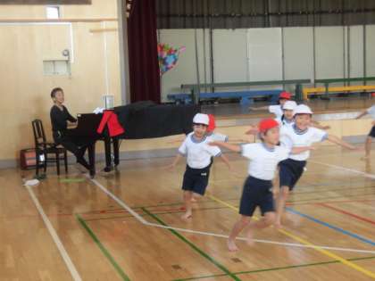 毎年ご指導いただいている野崎賛成をお招きして、1年生が先生のピアノに合わせて運動しました。ピアノに合わせてトンボになって走ったり、止まったりみんな元気いっぱいに体を動かして楽しみました。