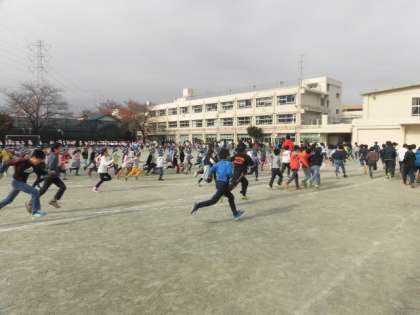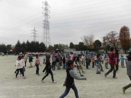 ハッスルタイムでのマラソン、1年生も元気に取り組んでいます。頑張って走ったあとは、手洗い・うがいをして風邪の予防に努めましょう。