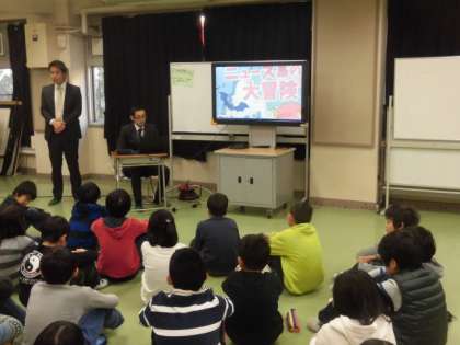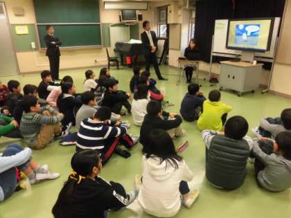 5年1組が2校時、2組が3校時に日本青年会議所の方のメディアリテラシー教室の授業を受けました。テレビや新聞、インターネットで流される様々な情報には、誤った情報や操作された情報もあることを視覚的に見させていただき、クイズ形式で楽しく学ぶことができました。社会科の学習で情報について学ぶ5年生にとってとてもわかりやすい出前授業でした。ありがとうございました。