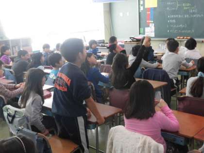 2020年に開催される東京オリンピック・パラリンピックのマスコットは、全国の小学生の投票で決まります。学級ごとで3種類のマスコットの案の中から1つ選びます。今日は4年生のクラスで、オリンピックとは、オリンピックのマスコットの意味とかみんなで学習したうえで一つ選びました。ほかの学年でもこれから投票を行っていきます。
