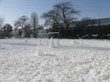 9時15分に名残惜しそうに教室に戻った子どもたち。校庭には、たくさんの雪の芸術作品が残されました。