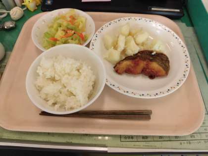 今日の給食は、*ごはん *魚のかわりソース *粉ふきいも *野菜のレモンしょうゆかけ