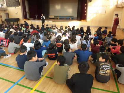 体育館に3年生から5年生が集まってクラブ活動説明集会を行いました。来年度のクラブ活動は何にしようか?新しいクラブを作るにはどうしたらいいか?4年生になってはじめてクラブ活動をする3年生もしっかりと話を聞いていました。5年生は4月からは最上級生としてクラブ活動をリードします。がんばりましょう。