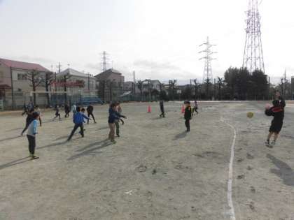 先週の雪でなかなか校庭で遊べません。今日は、久しぶりに中休みに校庭で遊びました。ぬかるんでいないところで元気に遊びを楽しみました。昼前からは雨が降り始め、昼休みは遊べませんでした。今日も雪の予報です。早く外で思いっきり遊べるといいですね。